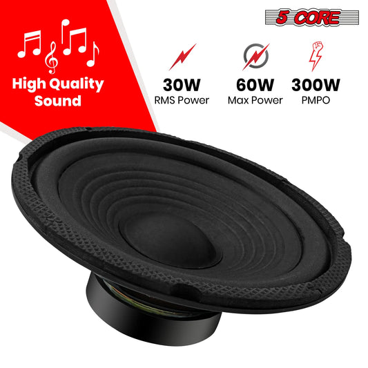 5Core 6.5 Inch Subwoofer Speaker 300Watt Car Subwoofer 4Ohm Replacement Sub Woofer